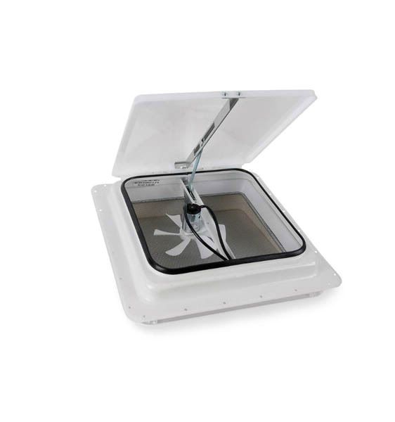 JENSEN ROOF VENT 12V 14X14IN WHITE METAL WITH FAN